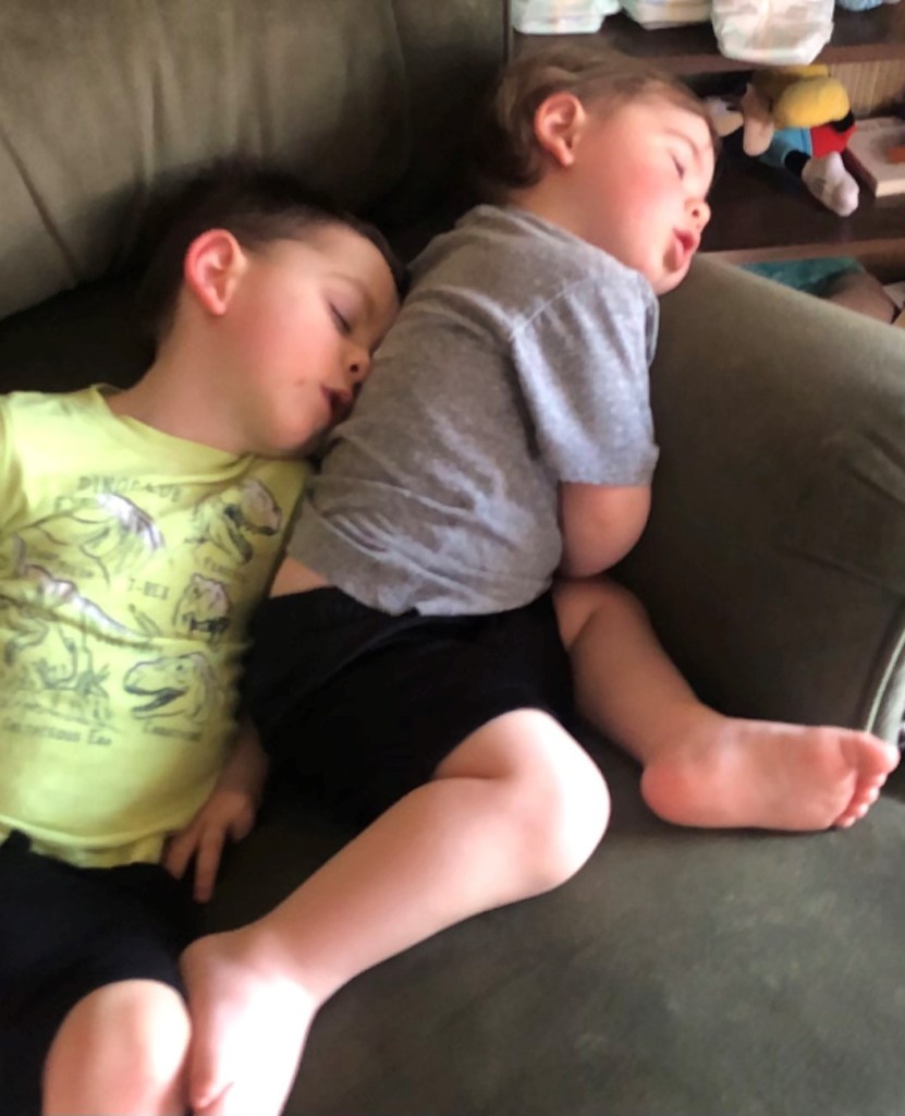 Two of the four grandsons caught taking a nap-the only time they are really quiet!