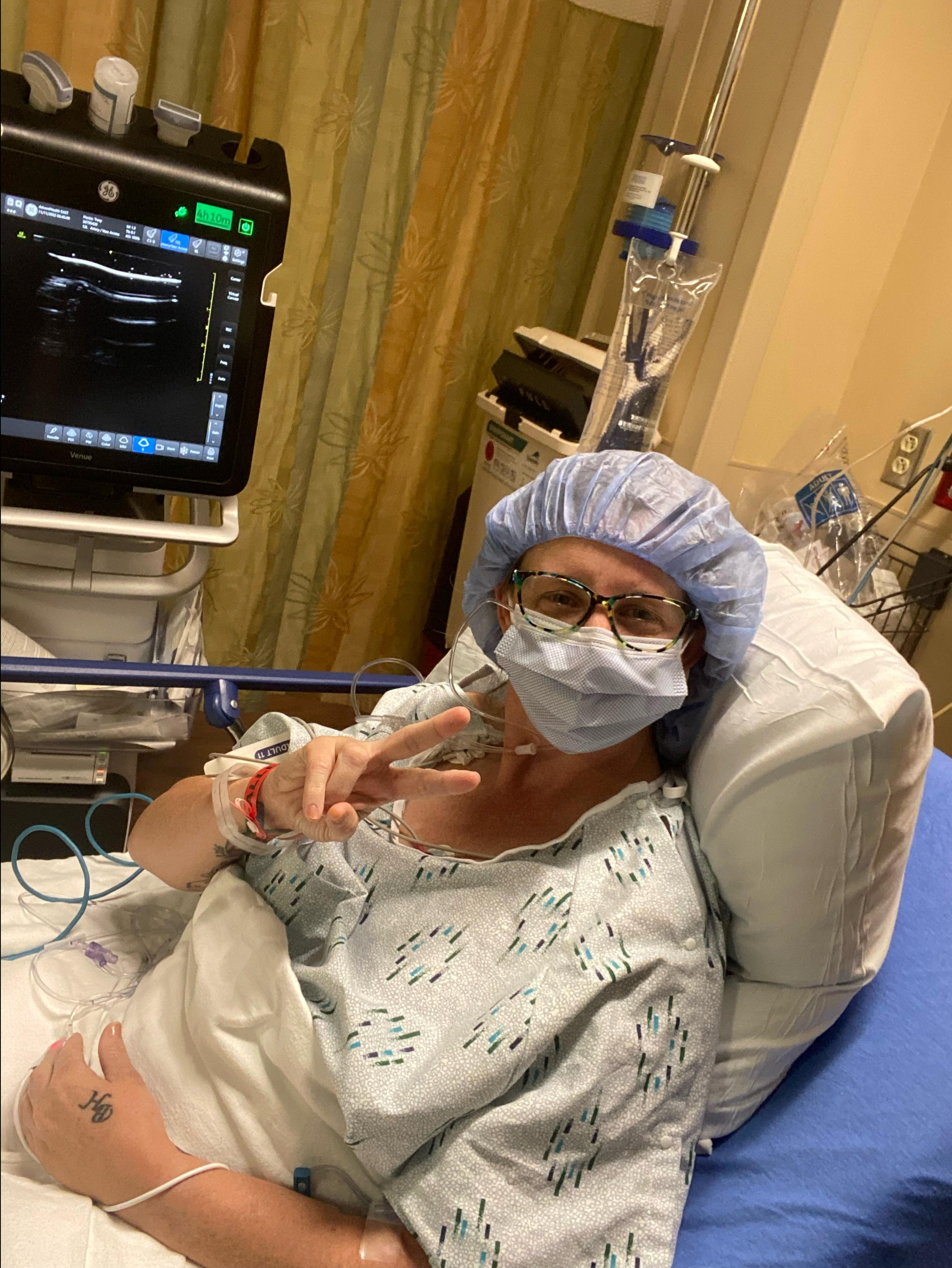 Dr. B arrives at my bedside and puts me even more at ease with his amazing bedside manner. Jokes were told and we spoke of some common likes in music taste. I am able to meet the OR nurse and she answers questions from myself and Brett. She appears to have a great attitude and I am pleased she will be my ‘eyes and ears’ in the OR. We agree that country music will be playing as I get ready for general anesthesia.